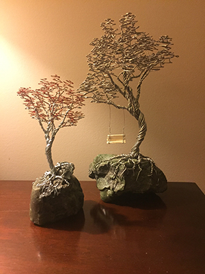 someone's eye. The windswept trees represent movement, like a moment captured in time. Trees are a metaphor for stability, growth, nurturing, and life. The trees with swings were created to evoke 2 people sharing a life, together. They make wonderfully memorable wedding, anniversary, or Valentine gifts.