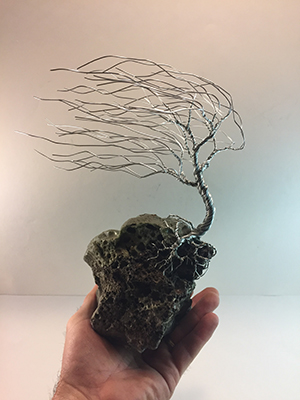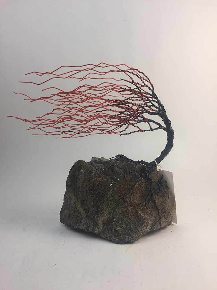 20 gauge Silver wire tree with red foliage on Connecticut slag glass